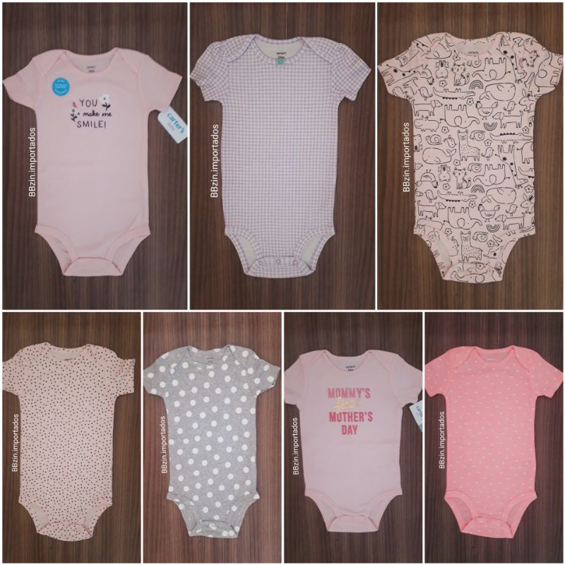 Kit body carters manga curta bebe menina 5 peças.. Body manga curta com estampa muito fofa. R$ 139,90 5x de r$ 27,98 sem juros no cartão de crédito. Esses bodysuits são feitos 100% em algodão, possuem painel reforçado e botões sem níquel, fazendo dessas peças duráveis, confortáveis e seguras.detalhes do produtokit com 5 bodysuits de manga curtaestampas de flores, b. 25 reais con 90 centavos r$ 25, 90. 14 reais con 08 centavos r$ 14, 08. Super confortável, quem conhece a marca sabe. Desapegos da jade body …. Kit body carters manga curta bebe menina 5 peças.